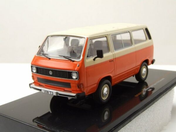 - Authentische Farbgebung: Die orange-beige Lackierung entspricht exakt der Farbgebung des VW T3 Caravelle Bus von 1981.