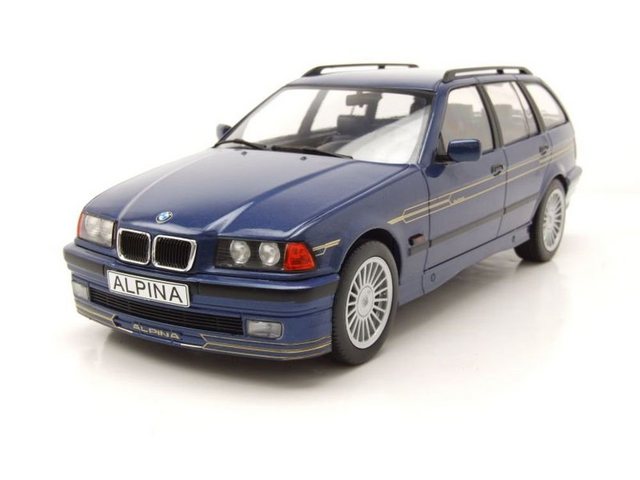 Die Karosserie: Die Karosserie des Modellautos ist in einem eleganten Dunkelblau Metallic lackiert, das dem Originalfarbton des Alpina B3 3.2 Touring entspricht. Die Lackierung ist von höchster Qualität und verleiht dem Modellauto einen edlen Glanz. Die Linienführung der Karosserie ist perfekt getroffen und fängt die dynamische Form des Originals perfekt ein. Die präzise ausgeführten Details wie die Chromzierleisten, die Türgriffe und die Außenspiegel tragen zur Authentizität des Modellautos bei.