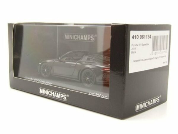 Willkommen in der Welt der detailgetreuen Perfektion! Entdecken Sie mit dem Minichamps Modellauto Porsche 911 (991) Speedster 2019 in elegantem Schwarz ein Stück Automobilgeschichte im Maßstab 1:43. Dieses exquisite Sammlerstück ist mehr als nur ein Modellauto – es ist eine Hommage an die legendäre Porsche-Tradition und ein Muss für jeden Liebhaber klassischer Sportwagen und anspruchsvoller Modellbaukunst.