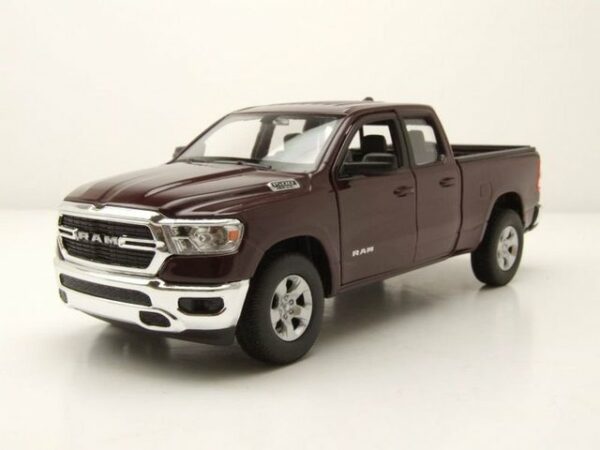 Die Karosserie: Die Karosserie des RAM 1500 Pick Up 2019 wurde mit höchster Präzision gefertigt. Die Linienführung, die Proportionen und die Details wie die Scheinwerfer, der Kühlergrill und die Stoßfänger sind dem Original nachempfunden. Die hochwertige Lackierung in Bordeaux verleiht dem Modell eine edle Optik.